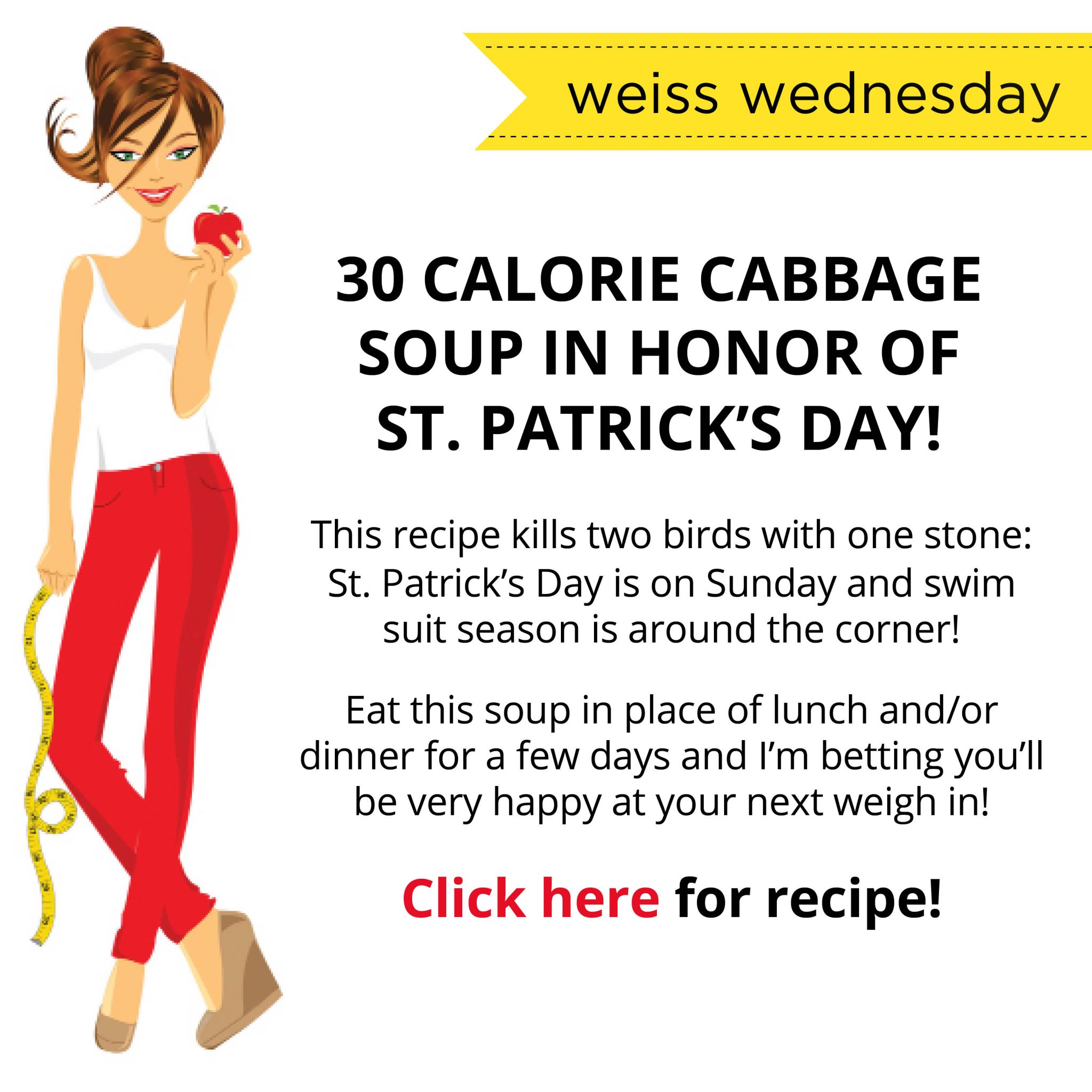 30 Calorie Cabbage Soup in honor of St. Patrick’s Day!